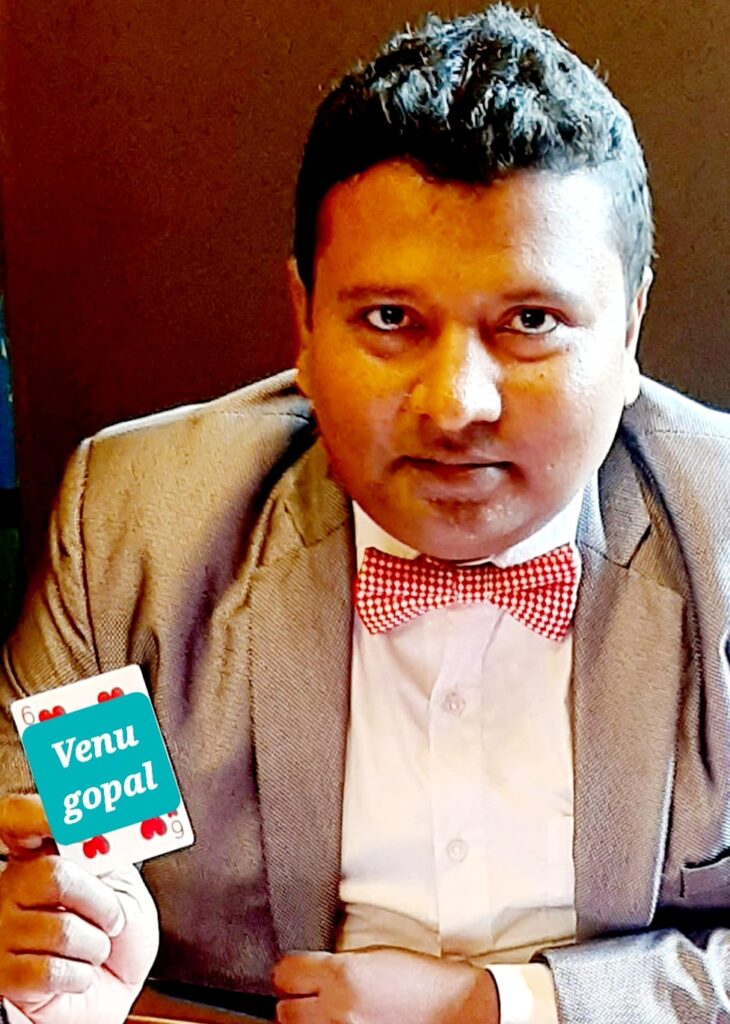 Venugopal, a master mentalist, delivers captivating performances that blend mind reading, card mentalism, telepathy, predictions, and psychological illusions. His shows are perfect for weddings, corporate events, and private parties—leaving audiences amazed, entertained, and spellbound by the power of the mind and mystery of magic.